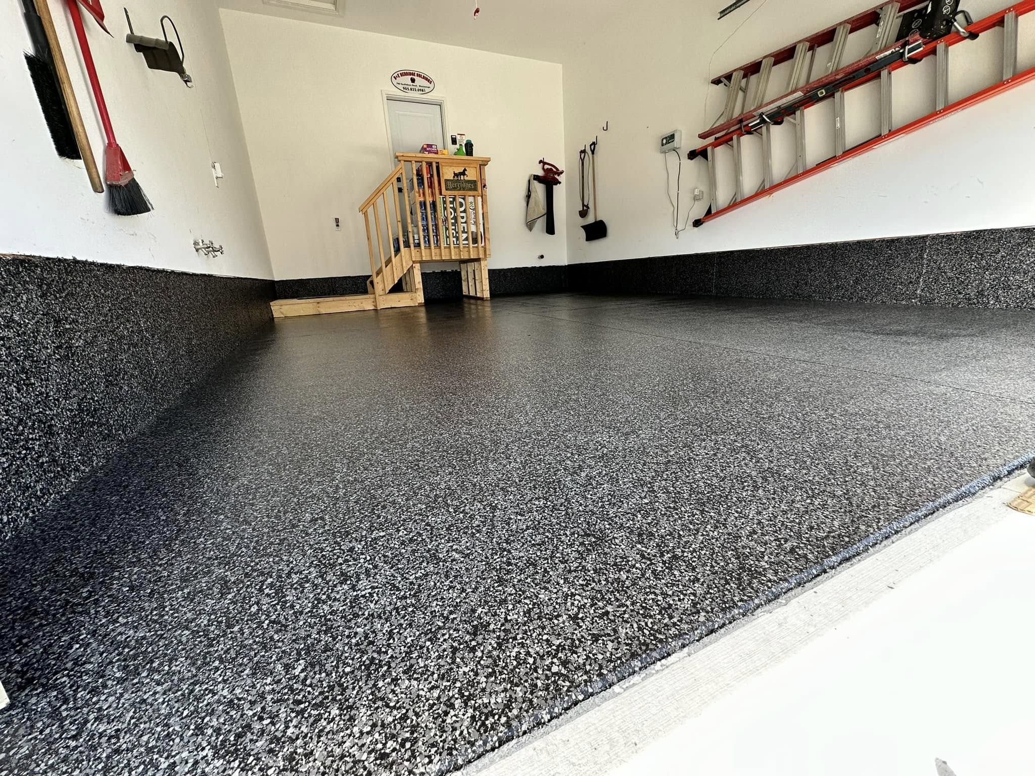 Darkside Flake, Rich black flakes combined with stone concrete hues create the “Darkside” mix—a striking option for dramatic accent areas, bold countertops, or commercial floors demanding high visual contrast and statement-making appeal.