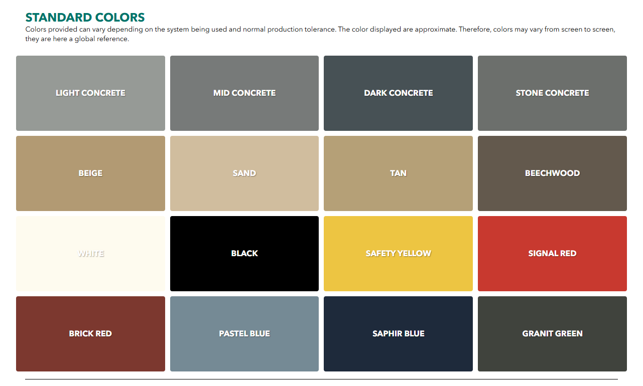 Colors: Full Labsurface Standard Color Chart (approximate, may vary by system/screen)